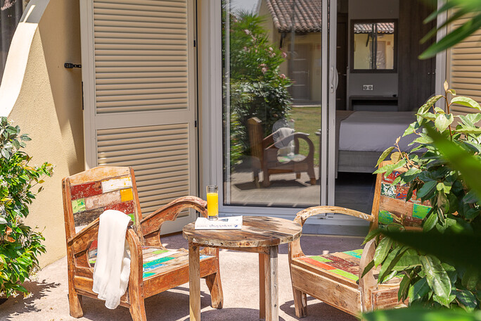Pour deux personnes •Superficie de 25m² • Un balcon de 5m² ou une terrasse privative de 8m² avec fauteuils et table basse. •Un grand lit king size de 180x200 •Télévision à écran plat de 110cm avec smart TV •Climatisation et Chauffage •Wi-Fi gratuit entièrement rénové en 2019 •Coffre-fort •Mini-frigo •Entrée privative.